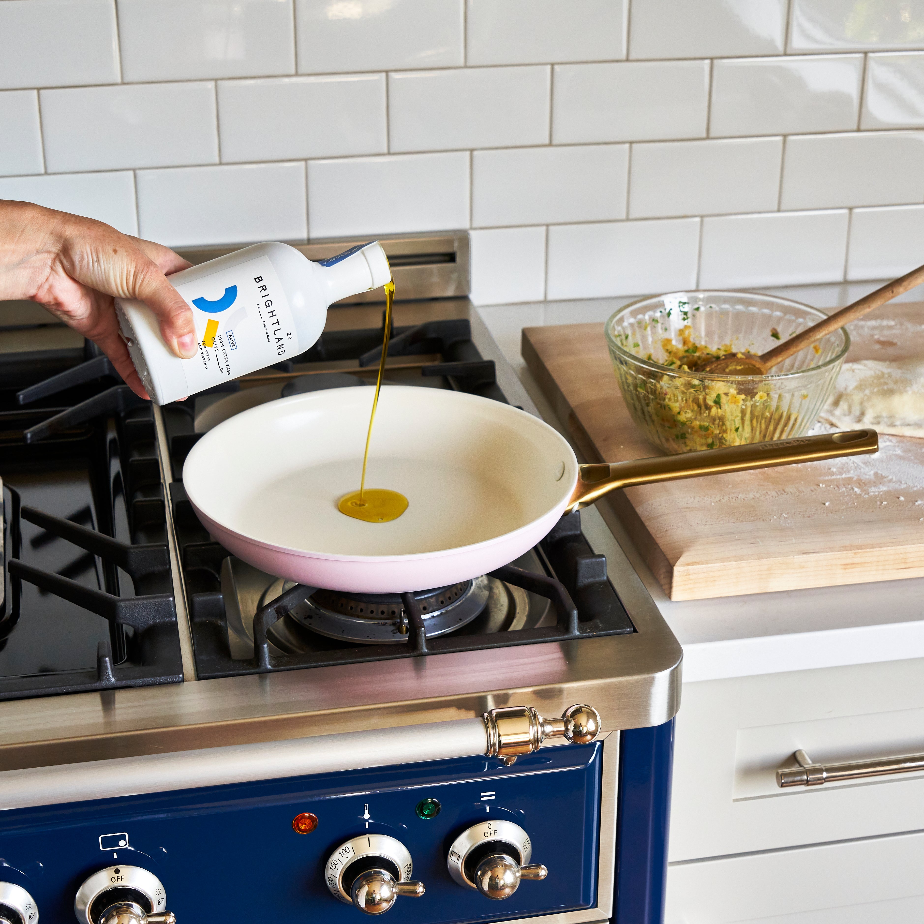 Extra virgin olive oil is known for its rich, grassy flavor and aroma. Brightland olive oil is fruity and peppery, ready to enhance any dish. And because fresh olive oil has a natural smoke point of up to 410F, you can sear, roast, and saute away.