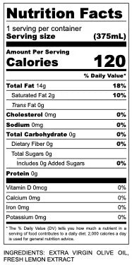 Lemon olive oil, custom-blended for lustrous fare and golden hours. Lovingly made from olives milled within hours of harvest and infused with bright lemon oil.